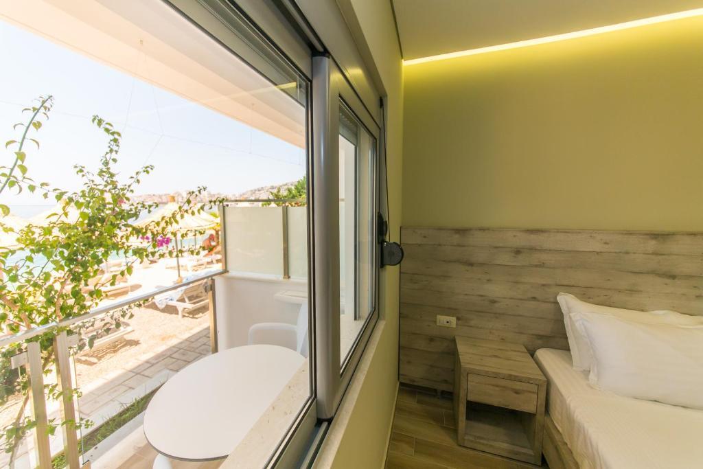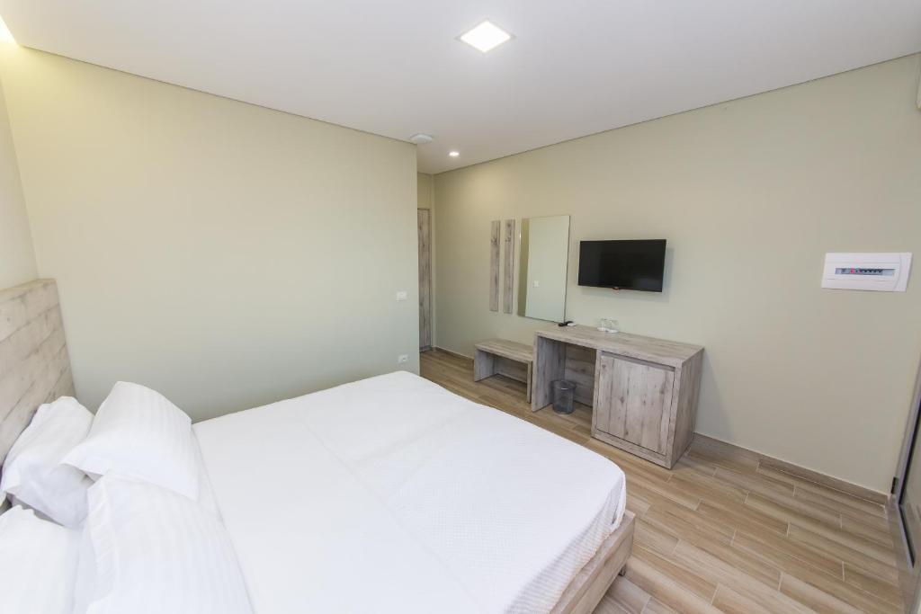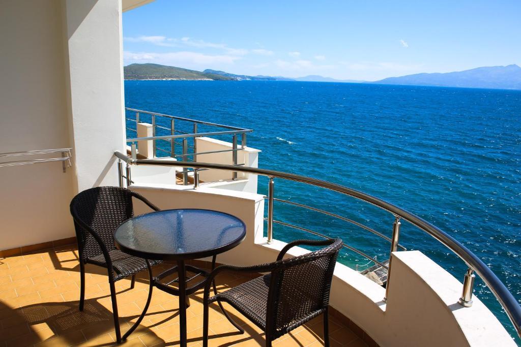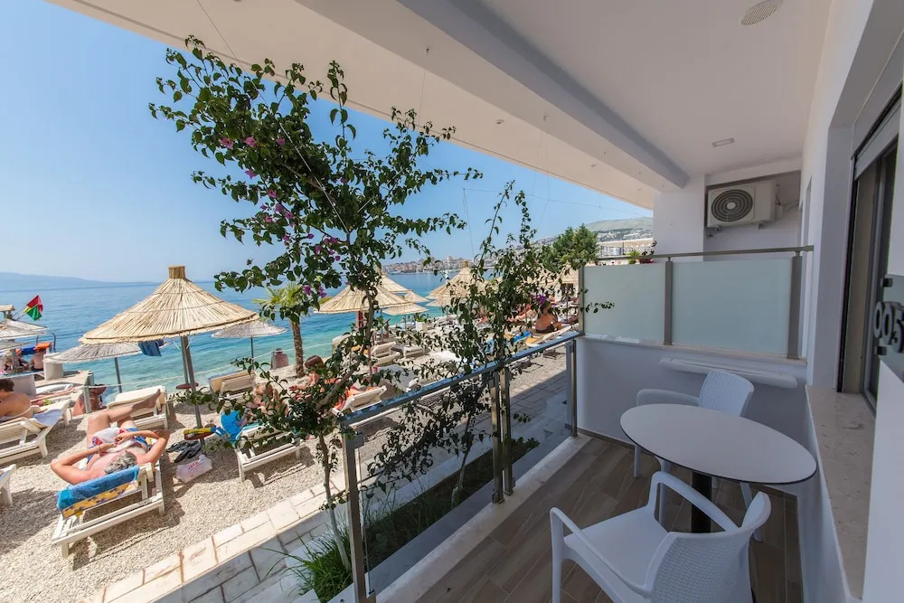 Отличный современный отель, с просторными светлыми номерами. Часть номеров имеют балконы с видом на море, а часть, находящихся на первом этаже имеют выход прямо на пляжную зону и бассейн.Персонал отеля вежлив и всегда готов придти к вам на помощь. Уборка ежедневно и такая, что все в номер потом просто блистает. Удобная кровать. В отеле имеется лаундж - бар, свой ресторан с террасой и видом на пляж и море и небольшой бар на территории пляжной зоны. Пляж - бетонная плита с лежаками и шезлонгами с видом на остров Корфу), маленьким бассейном, двумя спусками к воде а так же понтонным пирсом с которого удобно нырять. Отель расположен на определенном отдалении от шумных мест Саранды, рядом имеется несколько магазинов, огромное количество кафе и обменных пунктов.