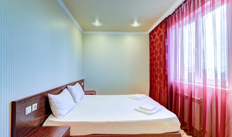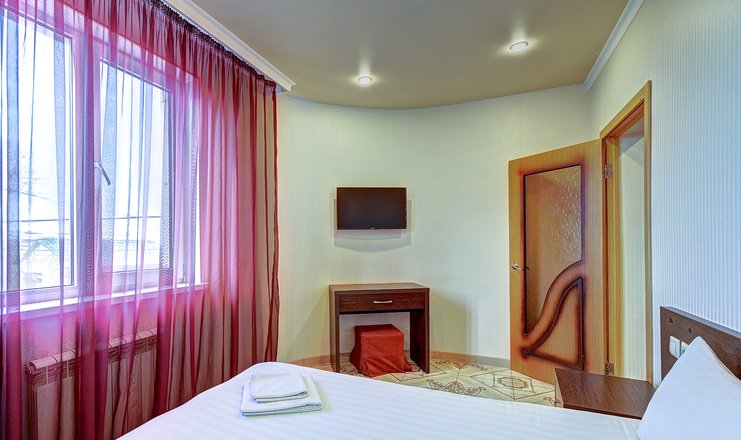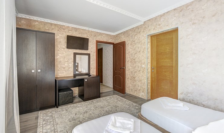 Однокомнатный номер с двумя односпальными кроватями с возможностью объединения. В стандартные удобства входит кондиционер, телевизор, холодильник. Ванная комната с душем укомплектована феном, тапочками и туалетными принадлежностями.