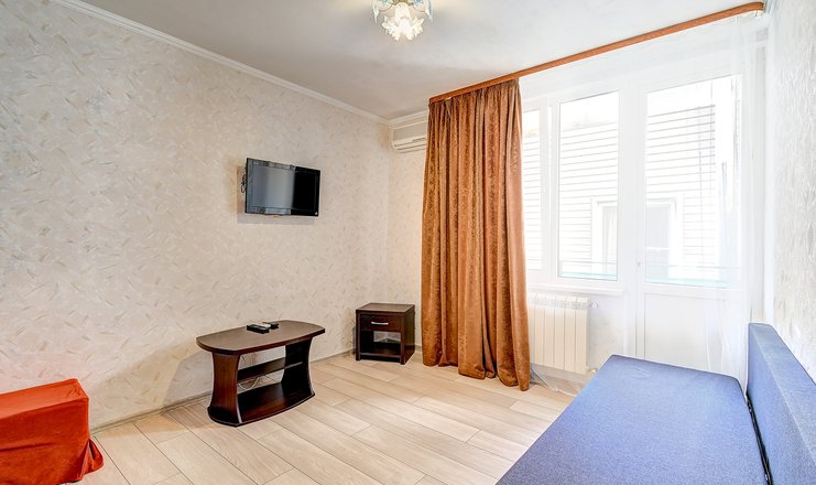Однокомнатный номер с меблированным балконом и двумя односпальными кроватями с возможностью объединения. В стандартные удобства входит кондиционер, телевизор, холодильник. Ванная комната с душем укомплектована феном, тапочками и туалетными принадлежностями.