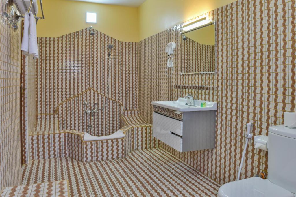 В комплектации номера двуспальная или две односпальные кровати, телевизор, кондиционер, холодильник, сейф, чайно-кофейные принадлежности. Санузел с душем, феном, гигиеническими принадлежностями.