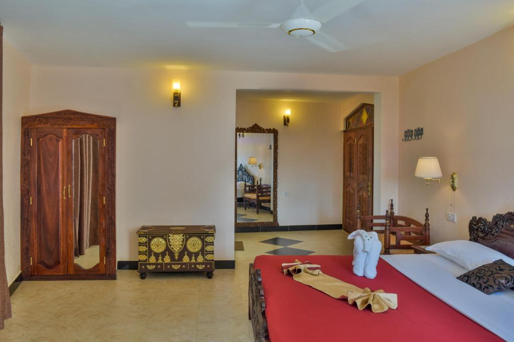 Семейный номер подходит для размещения 6-х человек на 3-х двуспальных кроватях. Удобства включают телевизор, кондиционер, мини-бар, сейф, чайный набор. Ванная комната с душем, феном, туалетно-косметическими принадлежностями.