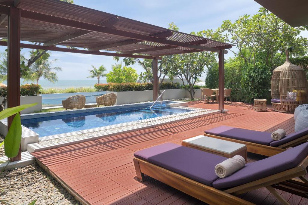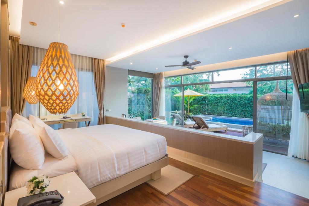 Номер Делюкс предлагает террасу с выходом в сад, двуспальную кровать или 2 односпальные кровати, зону отдыха, ванную комнату с душем, банными принадлежностями. В комплектации кондиционер, набор для приготовления чая и кофе, телевизор, холодильник, беспроводной Интернет.