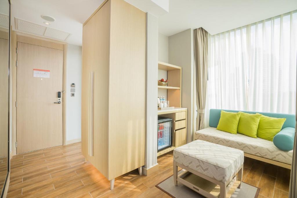 Однокомнатный номер состоит из спальни с двуспальной или 2 односпальными кроватями, ванной комнаты с душем, балкона. В удобства включены бесплатный Wi-Fi, кондиционер, телевизор, холодильник, чайный набор и набор гостиничной косметики.