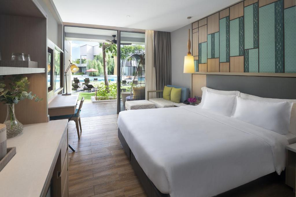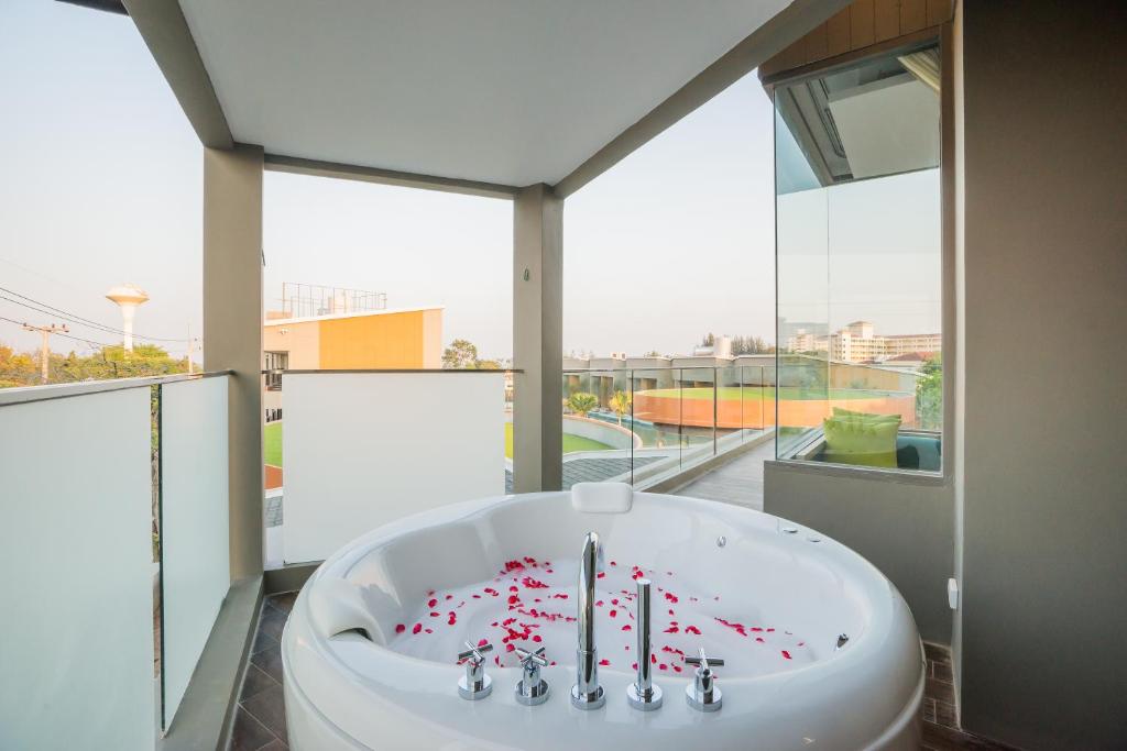 Комфортабельный номер с балконом, джакузи, собственной ванной комнатой с душем и фирменной косметикой. В числе стандартных удобств — телевизор, кондиционер, холодильник, чайно-кофейный набор, Wi-Fi. Гости размещаются на двуспальной кровати, есть зона отдыха, рабочее место.