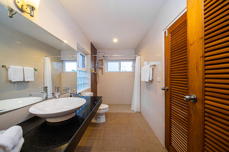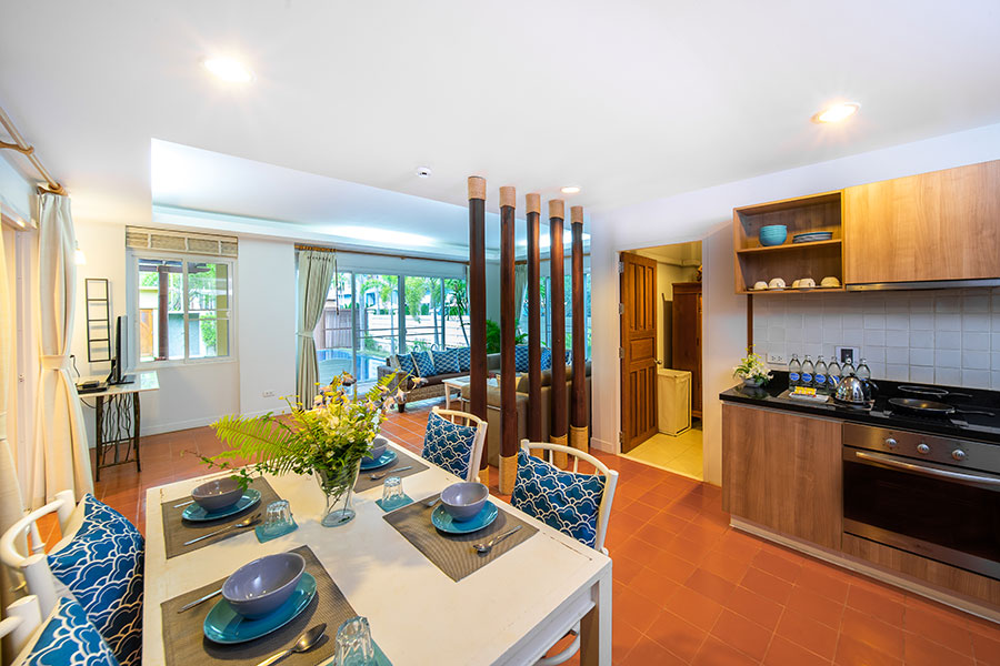 Просторная вилла включает две спальни, гостиную, обеденную и кухонную зоны, 2 ванные комнаты, террасу с бассейном. В распоряжении гостей Wi-Fi, телевизор, кондиционер, телефон, чайно-кофейный набор, фен, гостиничная косметика. Для размещения предлагаются две двуспальные кровати или двуспальная и две односпальные кровати.