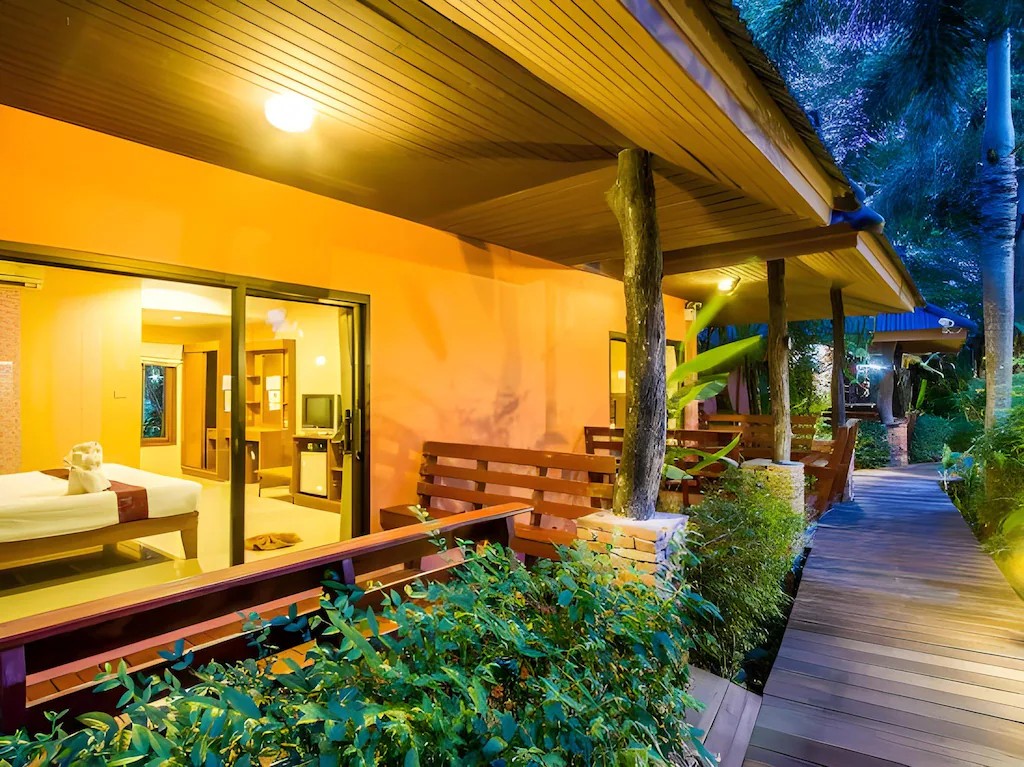 Хороший отель с красивой зеленой территорией, номера очень просторные, до побережья и ночного рынка минут 10 пешком (но до места отправления лодок и оживленной части например минут 30). Район тихий, это и плюс и минус - так как всё движение происходит минутах в 30 отсюда, чтобы сходить куда-то выпить или потусить надо ехать каждый раз. Но стоит отметить что отель уже не новый, все скрипит, стучит, основную деревянную дорогу нужно менять очевидно уже. 10 минут до побережья это близко, но по сути купаться надо ехать на другие пляжи или плыть
