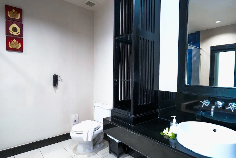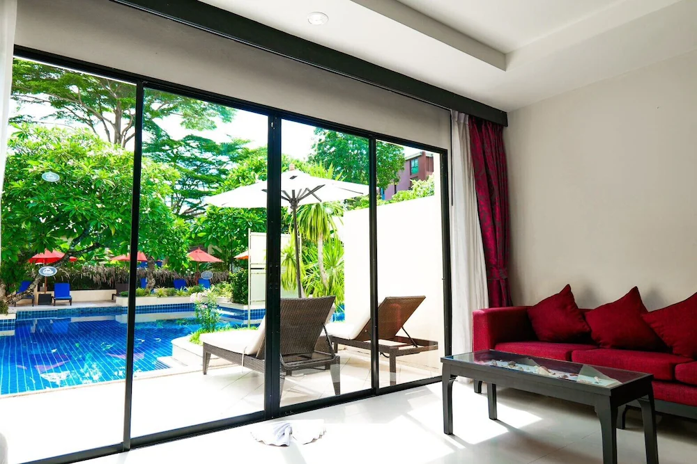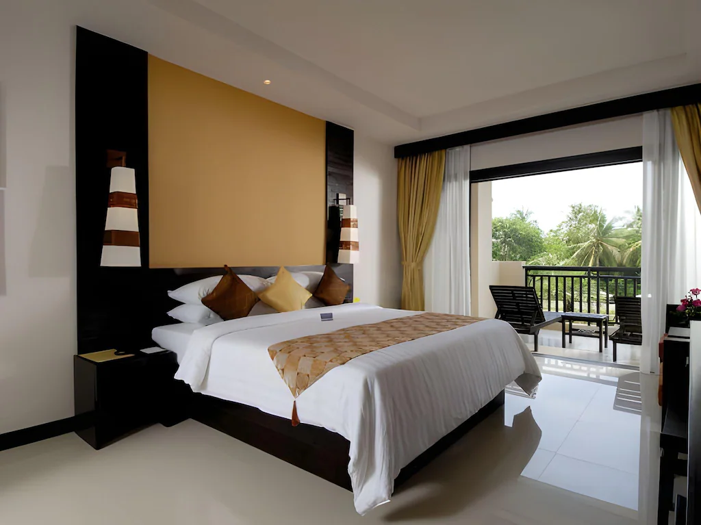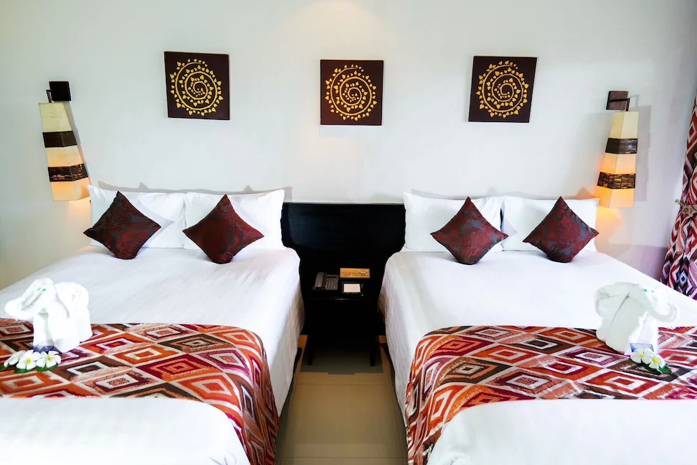 Плюсы в том, что это невероятно красивый отель, 3 удивительных бассейна, хороший большой номер, и огромный вкусный завтрак! Единственными минусами были то, что это было на вершине огромного холма и путешествовать с моей старшей матерью было труднее ей вернуться туда и ванна/душ было очень трудно войти и выйти. Также при проверке молодой человек, который относит сумки в номер, просит дать ему чаевые, как только вы попадете в номер. Мы все равно давали чаевые всем в Таиланде, но ему было очень гадко спросить.
