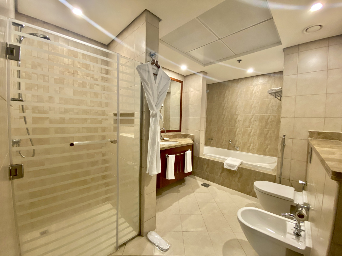 Удивительный вид на пляж и JBR. Виден и Палм-Айленд. Персонал очень сдержанный и вежливый. Ответственный за безопасность господин Мохаммед Гхаус отлично справлялся со своими делами. Лучших пожеланий команде. PS предлагает, чтобы шатаф был в каждой ванной.